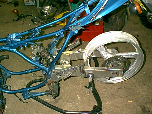have cut off) and make extension mounts for the swingarm linkages and rear